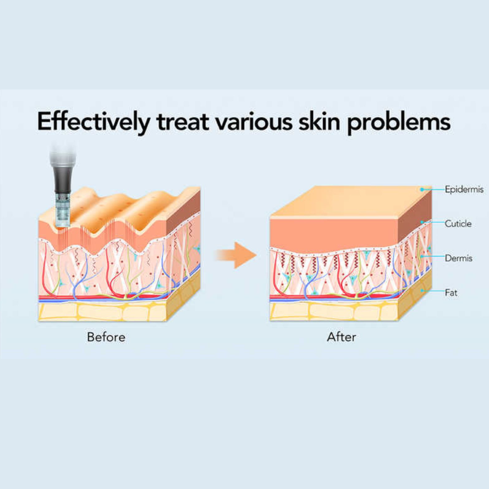Nano needles do not reach the dermis, so will not stimulate significant collagen production or improve deep scars and wrinkles.