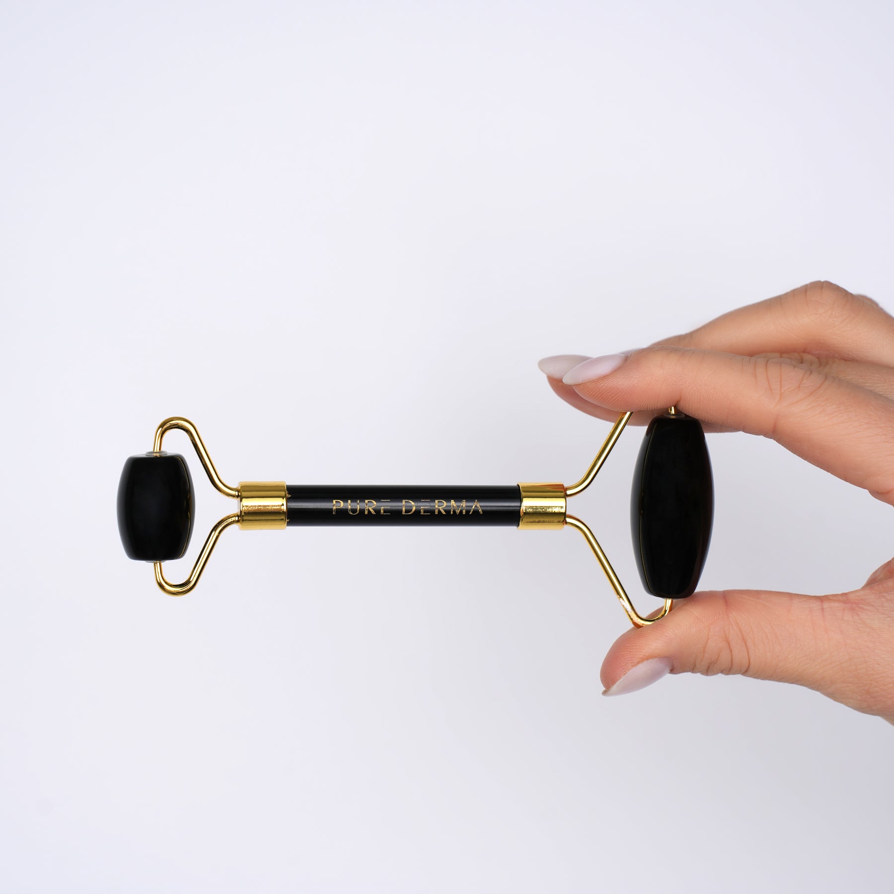 The Black Obsidian Gua Sha & Roller set is made from beautifully crafted 100% naturally occurring volcanic glass formed when lava extruded from a volcano cools rapidly with minimal crystal growth, naturally retaining warmth.