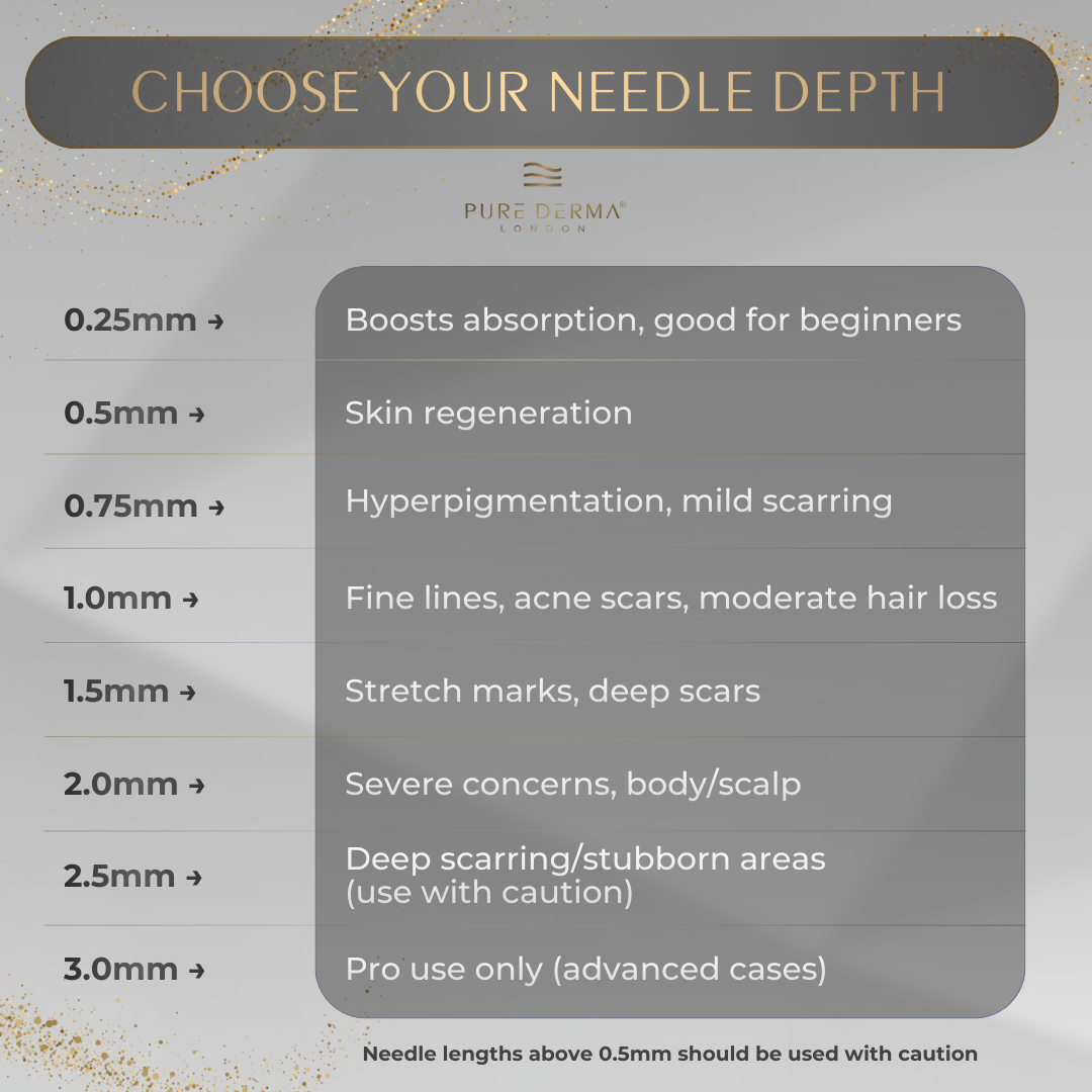 Customisable for various skin concerns - Adjustable needle depth of 0.25mm to 2.5mm.