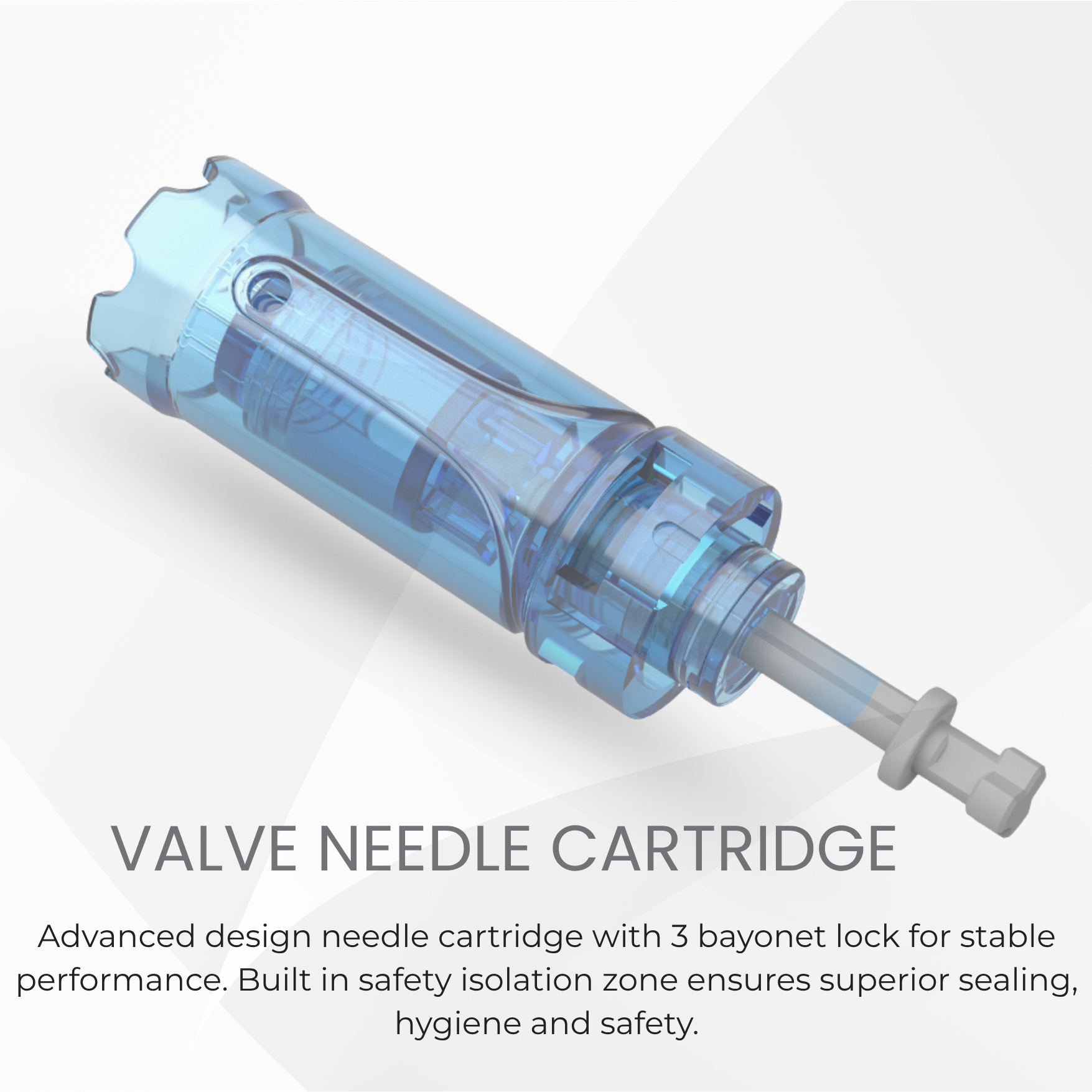 Each cartridge is sterilised with medical grade EO Gas and individually packaged to ensure hygiene safety standards.