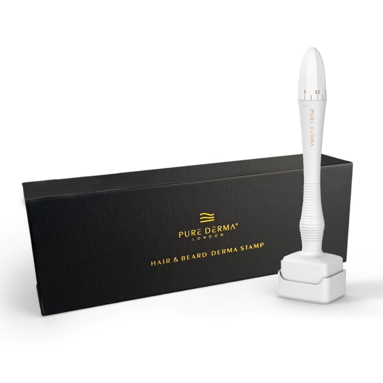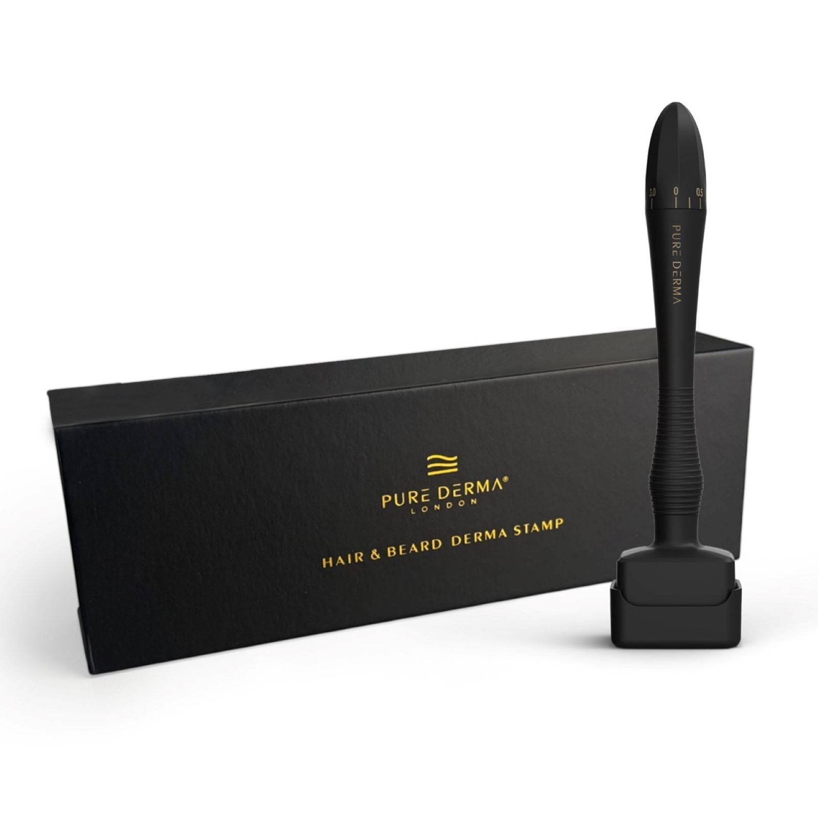 Designed for targeted application, this hair & beard derma derma stamp allows precise pressing on specific areas of the scalp and hairline, unlike the derma roller which glides a barrel across the surface.